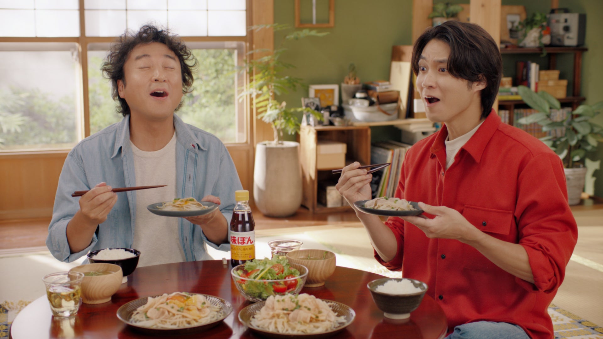 豚肉ともやしをレンジでチンして、”味ぽん”でさっぱり、おいしくいただけるメニューとして、ミツカンは2022年秋から”豚もやし”の提案を始めました。最近では、ムロツヨシさんと磯村勇斗さんを起用したTVCM『チンしてぽん!』篇(15秒)、『力説』篇(15秒)を、それぞれ9月3日(土)より公開。気の置けない仲間が集うムロツヨシさんの部屋を舞台に、ムロさん自ら”味ぽん”を使った絶品メニューと楽しいおしゃべりで来客をもてなし、食卓を囲むしあわせなひと時を描いたCMシリーズを展開。本動画は、ミツカン公式 YouTube チャンネルでご視聴いただけます。
