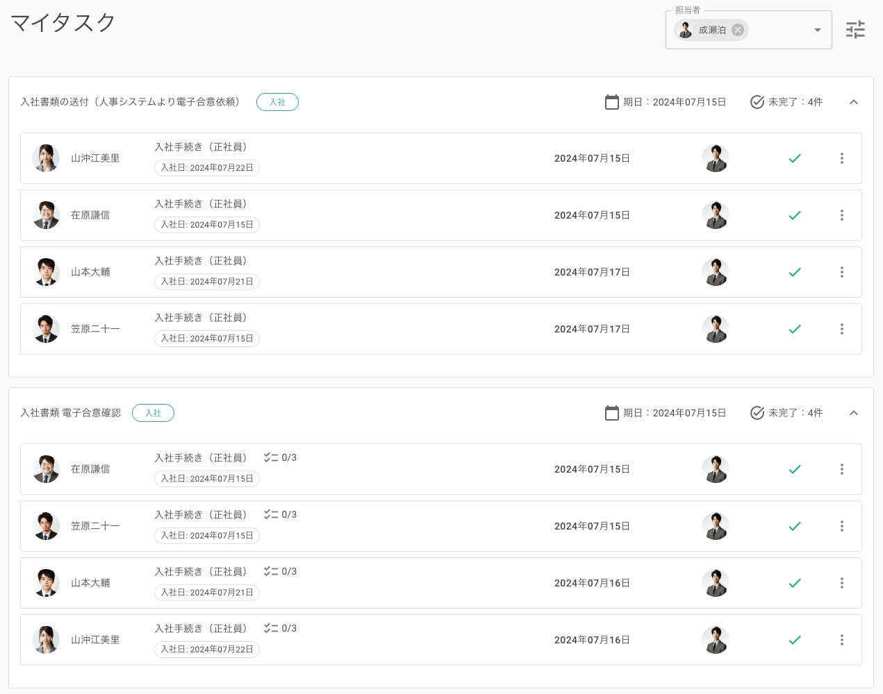 入社・退社のタスクが進めば、次のタスクの担当者に連絡が必要です。「mfloow」ならタスク完了をクリックで操作可能、次のタスクの担当者へ自動で通知することで連絡漏れによる遅延を防ぎます。