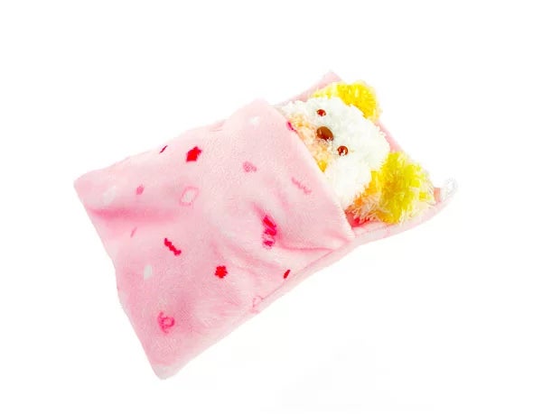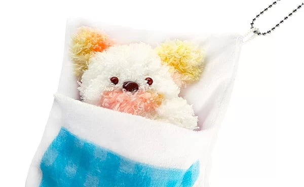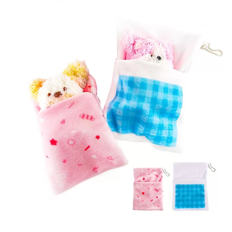 ぬいぐるみ布団はキーホルダーにもなります。お出かけポーチに詰めてもかわいく、旅行先でのぬい活にも最適。いつでもどこでも推しと一緒に楽しめます。