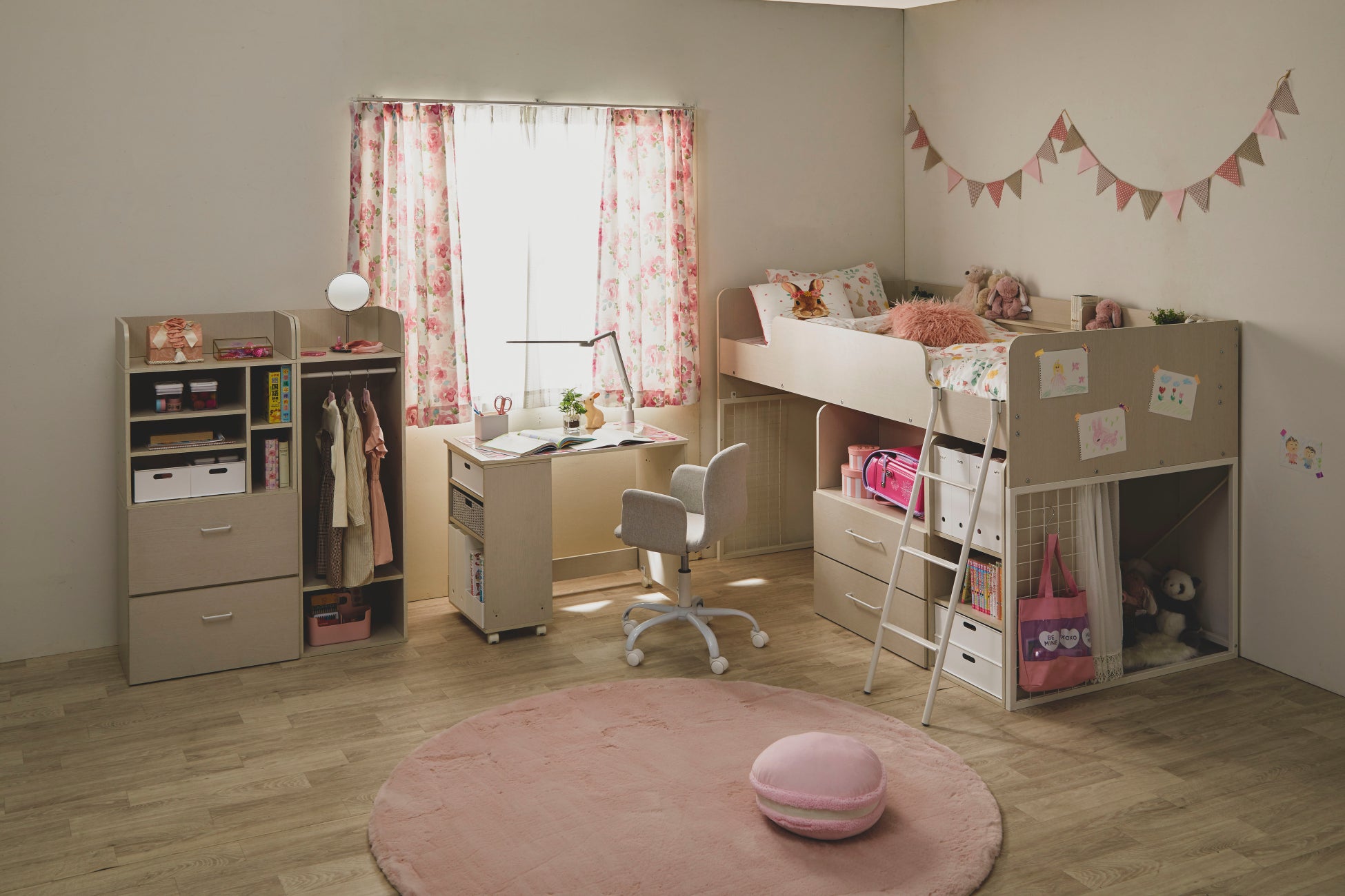 1台あれば勉強も就寝も遊びもお片付けもすべて同じ空間で完結でき、初めての子供部屋や新生活のお部屋づくりにぴったりのアイテムです。