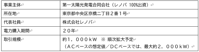 株式会社レノバとのNon-FIT太陽光発電所由来の電力購入契約締結について
