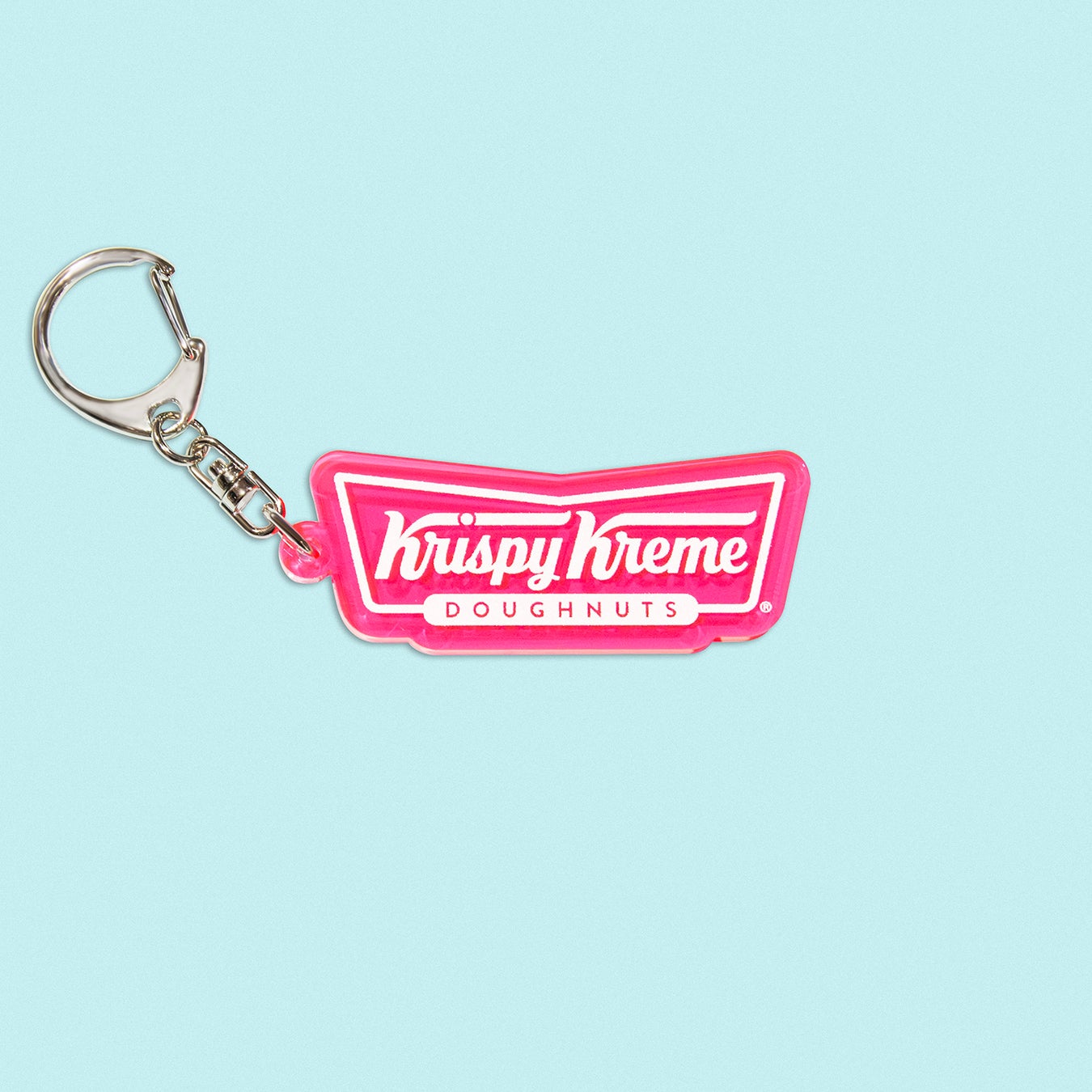 クリスピー・クリームのロゴのアクリルキーホルダー。