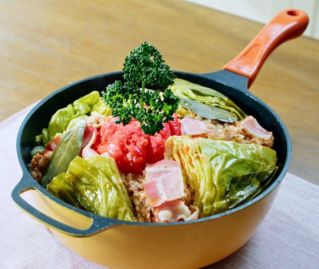 春キャベツを丸ごと1玉使った「どっかん!春キャベツの丸ごと煮」の仕込み中、スタジオにはおいしい香りが広がり、撮影後の試食が楽しみというスタッフ達の声に、レミさんも「おいしいんだから」と応えるシーンも。豆腐をタワー状に積み上げた「モリモリ!やっこタワー」は、とても簡単ですが、かいわれ大根をさしたそのインパクトに笑いが起きていました。
