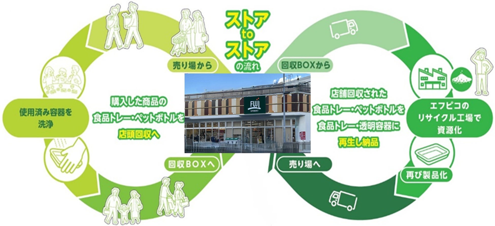株式会社エフピコ(本社:東京都新宿区、代表取締役会長:佐藤 守正、以下「エフピコ」)は富士シティオ株式会社(本部:神奈川県横浜市、代表取締役社長:川本 大作、以下「富士シティオ」)と協働し、神奈川県を中心とした48店舗の店頭で回収された使用済み食品トレーを新たな食品トレーに生まれ変わらせる「トレーto トレー」、 及び使用済みペットボトルを回収して新たな食品容器に生まれ変わらせる「ボトルto透明容器」を行い、 再び店頭で積極的に「エコトレー」「エコAPET」を使用する、水平リサイクル「ストアtoストア」を促進するための協働を強化します。