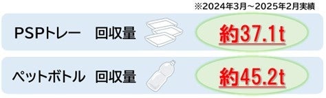 2024年度(2024年3月~2025年2月)において、使用済み食品トレーを37t、使用済みペットボトルを45t回収し、回収資源から再生されたエコ製品を売り場で使用することによって、346tのCO2排出抑制に貢献しました。これは、横浜スタジアム15面分の森林が吸収するCO2と同等の規模に相当します。ご協力いただきました地域の皆様には心より御礼申し上げます。