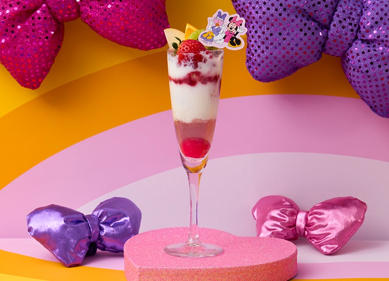 メニューは、ミニーマウスをイメージしたカラフルなポテトグラタン、デイジーダックをイメージしたリボン型のご飯がインパクト大で、キュートなシチューライス、2人をイメージした2種のフレンチトーストのプレート、トップに沢山のフルーツを盛り付けたグラス入りのパフェや2人をイメージしたドリンクなど、可愛いをぎゅっと詰め込んだカラフルでフォトジェニックなメニューをご用意いたしました。全てのメニューは、ディズニーの栄養成分に関するガイドラインに適合した塩分控えめで低糖質な、身体にやさしいヘルシーなメニューとなっています。