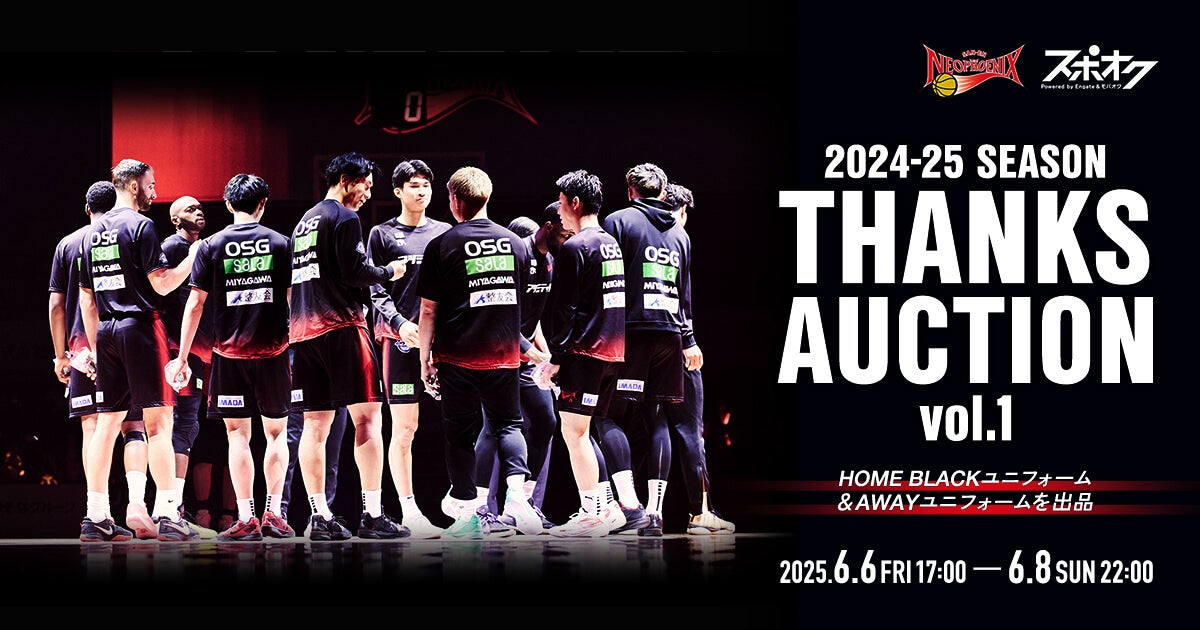 三遠ネオフェニックスは、2024-25シーズンにいただいた、たくさんの応援に感謝の気持ちを込めてTHANKS AUCTIONを6弾にわたり開催いたします。