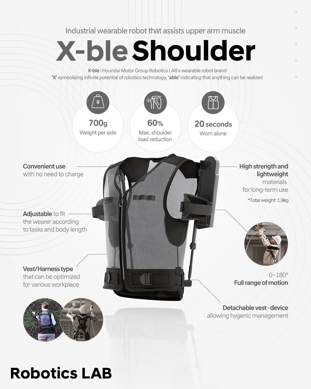 「X-ble Shoulderは、Robotics LABの技術力を活用し、実際のユーザーからのフィードバックを取り入れて開発されたウェアラブルロボットです。今後は、ウェアラブルロボットの普及を目指して、体の動きに合わせることができ、着用者の日々の生活を向上するような製品を生み出していきます。このような役に立つ製品をより多くの人が利用できるよう、これからもテクノロジーの限界を押し広げていきます」と、Hyundai MotorとKiaのRobotics LAB長のDong Jin Hyun常務(ヒョン・ドンジン)は述べています。