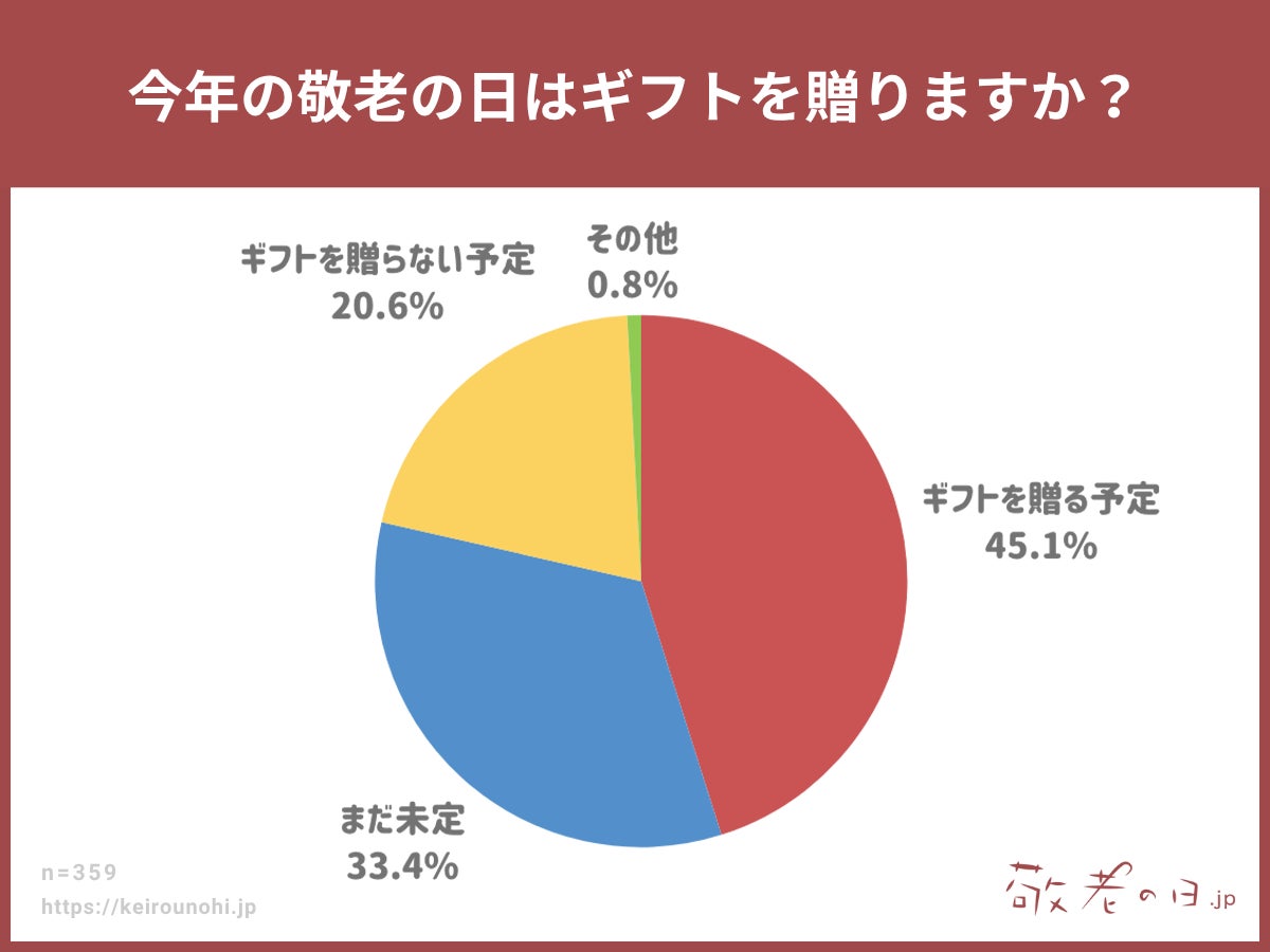 「今年、敬老の日にギフトを贈る予定」と答えた人は45.1%にとどまる