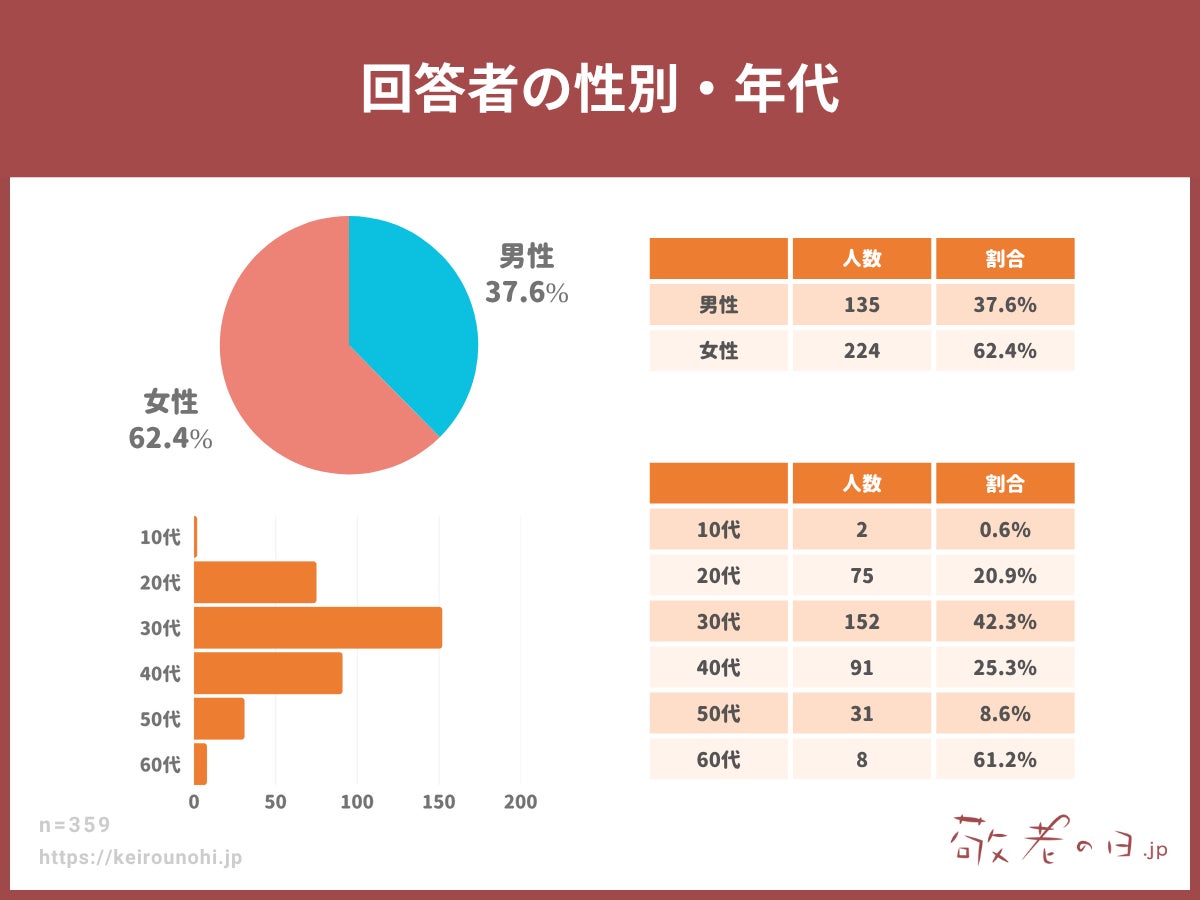 敬老の日に特化したメディアサイト「敬老の日.jp」( https://keirounohi.jp/ )は、全国の10代~60代の男女(計359名)を対象に 敬老の日に関するアンケート調査 を実施し、調査データを公開しました。