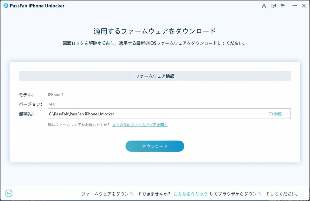 Step3:最新のiOSファームウェアが自動で検出されますので、保存先を指定して、「ダウンロード」をクリックします。