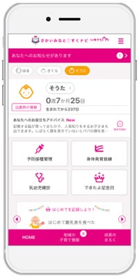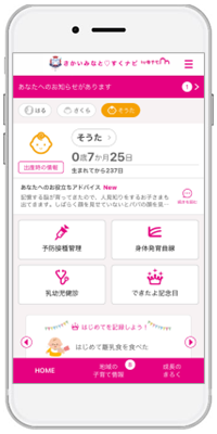 予防接種の管理や成長記録、境港市の子育て情報の配信などを行うことで、安心して産み、育てられるまちづくりの一助となれば幸いです。