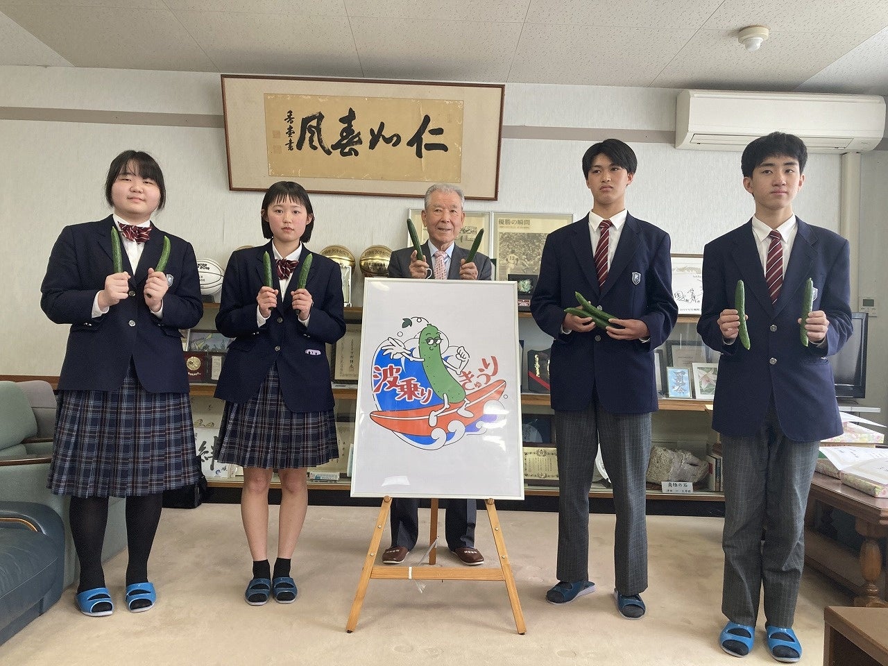 徳島県海部のきゅうりをPRするロゴマーク「波乗りきゅうり」誕生!