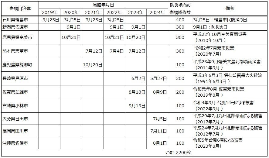 ◆防災毛布(災害支援用リサイクル毛布)の寄贈取り組み