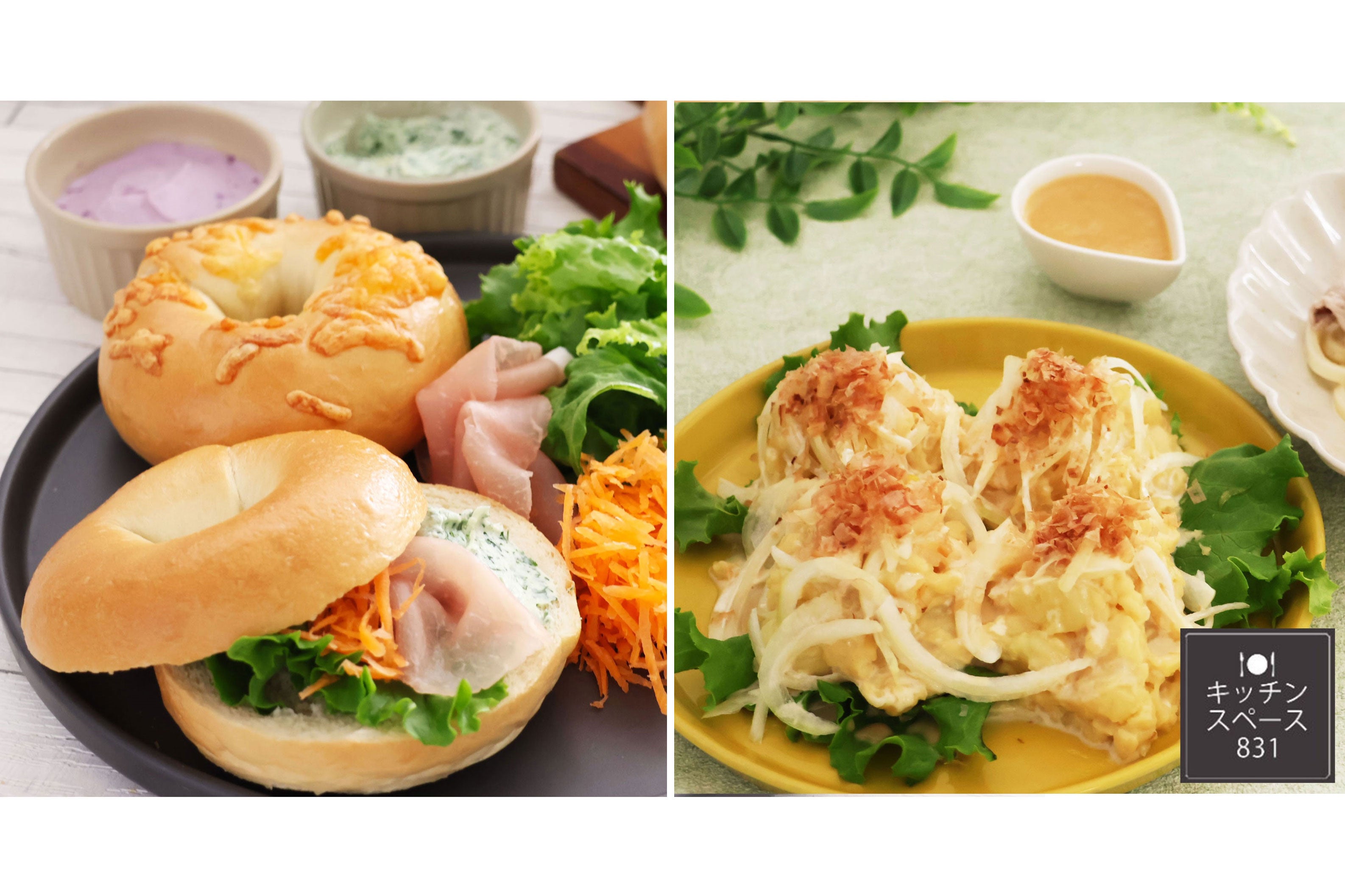 ケンコーマヨネーズの料理教室「キッチンスペース831」にて、対面ではもちもち食感の手ごねベーグル、オンラインではデパ地下で人気の和風オニスラポテトサラダが作れるレッスンを公開しました。