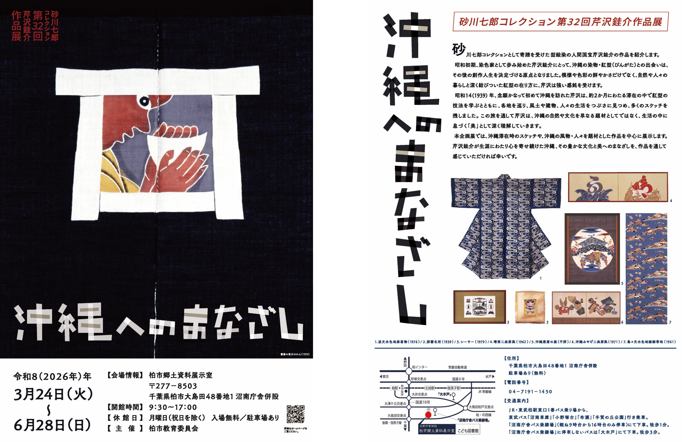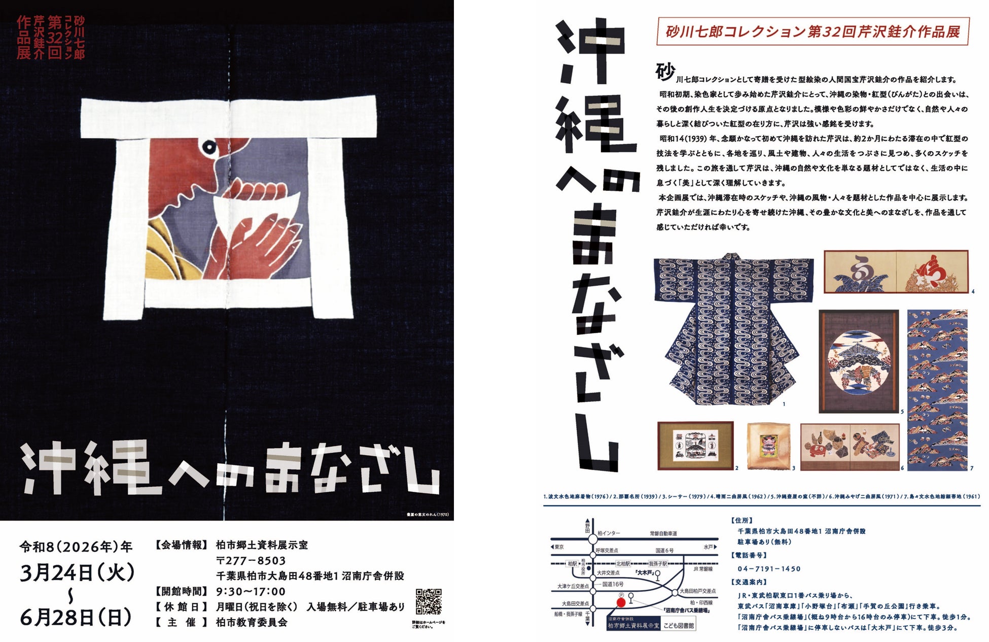 2026年3月24日(火)から6月28日(日)まで、柏市郷土資料展示室にて第32回芹沢銈介作品展「沖縄へのまなざし」を開催いたします。