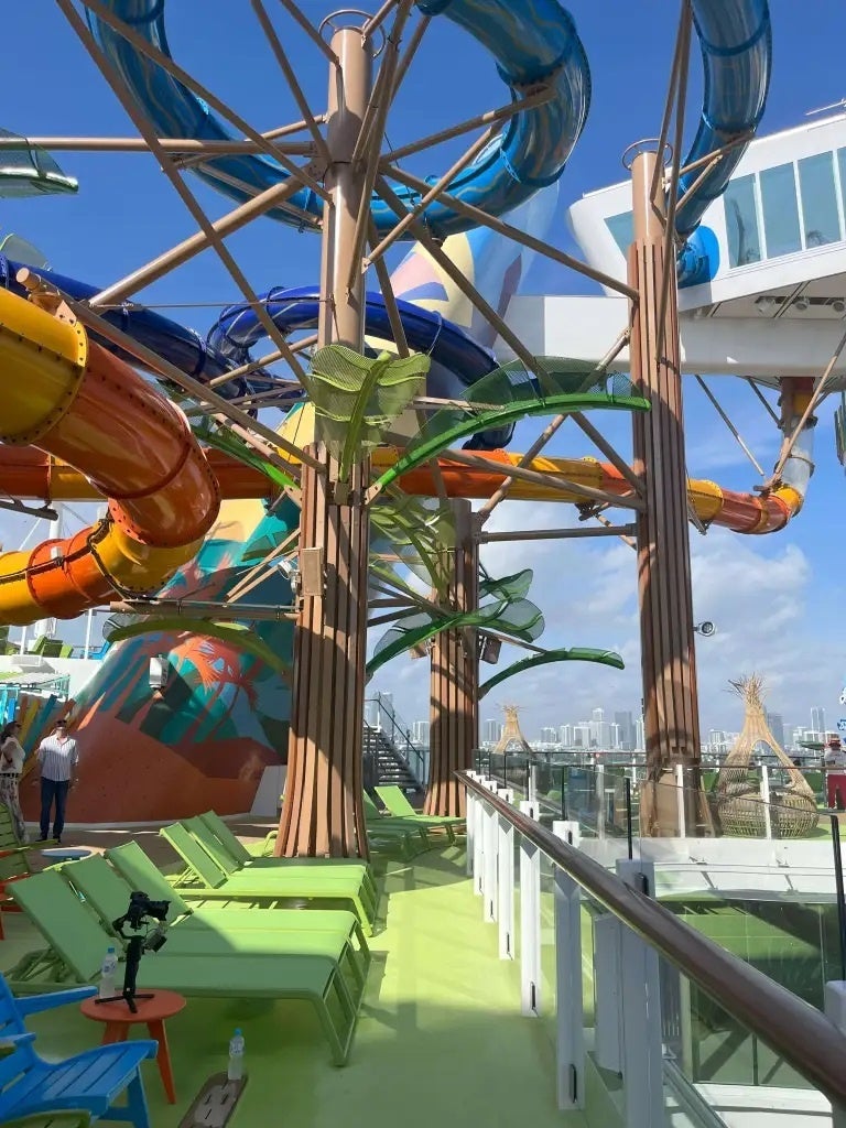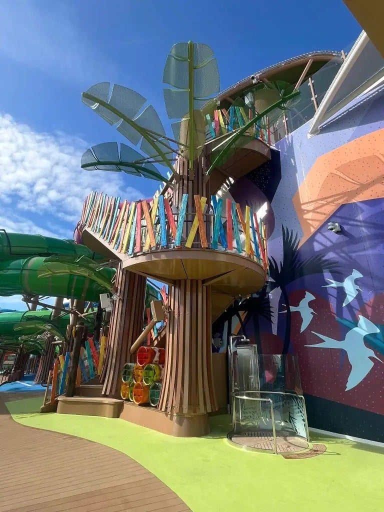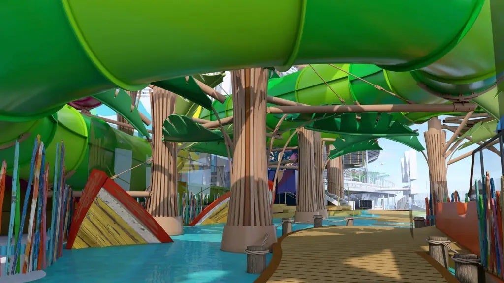 嵐に襲われた熱帯のリゾートとして構想されたこの没入型エンターテイメント・ハブは、ドラマチックな物語と最先端のデザイン技術を組み合わせています。シハブ・ナイームとロバート・ソルド・デザインチームが先頭に立って進めたこのプロジェクトは、ゲスト体験を再定義するというクルーズラインの野心的なビジョンを反映しています。