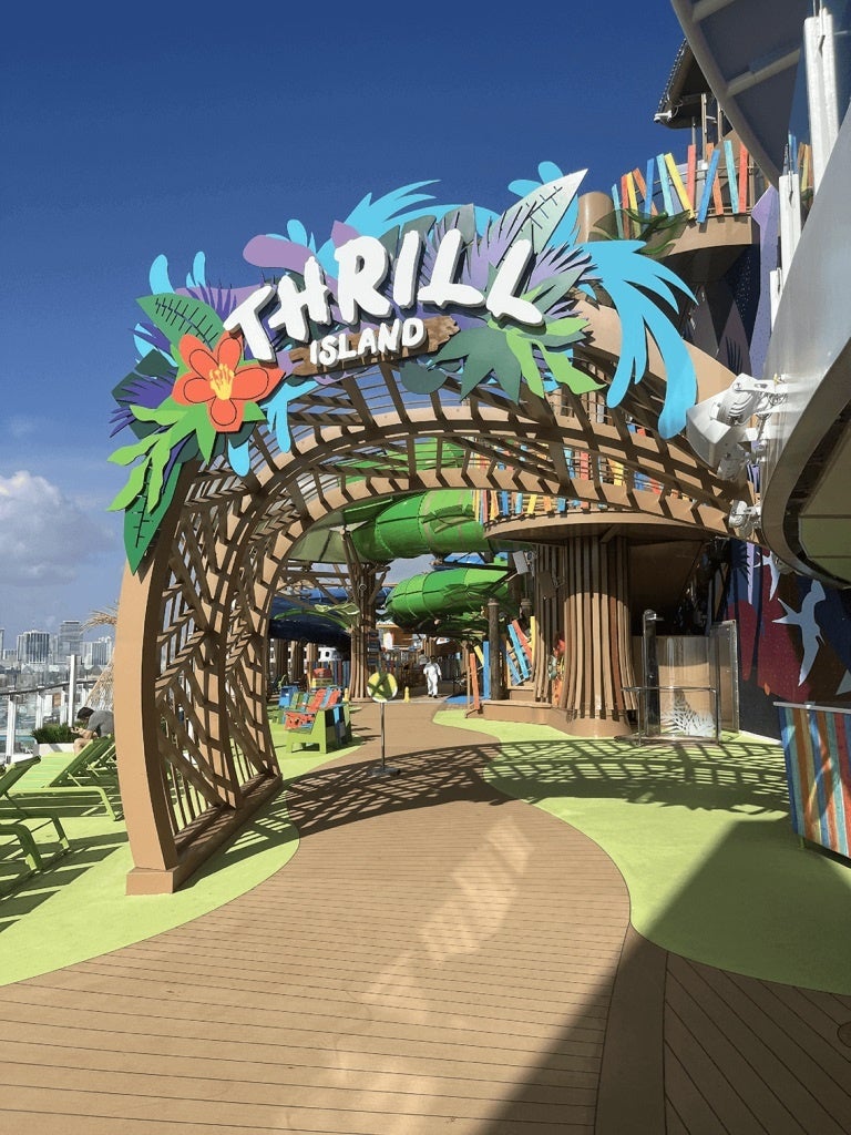 船尾に位置するスリル アイランドでは、魅了し楽しませるために設計された様々なアトラクションを提供しています。