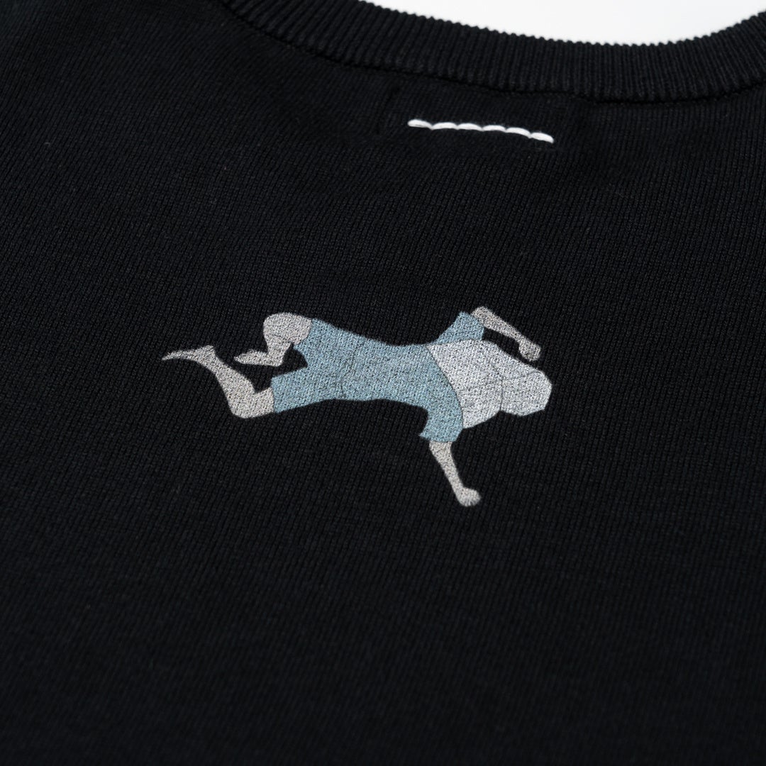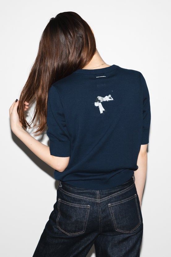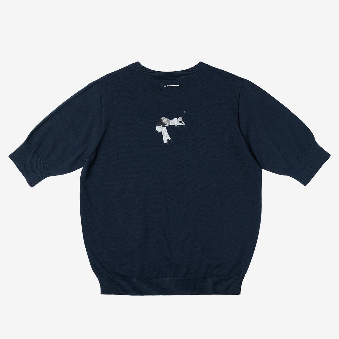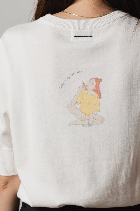 仕事に家事、勉強や介護など、マルチタスクの日々を送る現代人は、がんばりすぎてつい自分を追い込んでしまいがち。そんなとき、遊び心たっぷりのイラストが目に入ることで、自身をねぎらったり、意図的に休むことを促してくれたりするようなニットTに仕上げました。