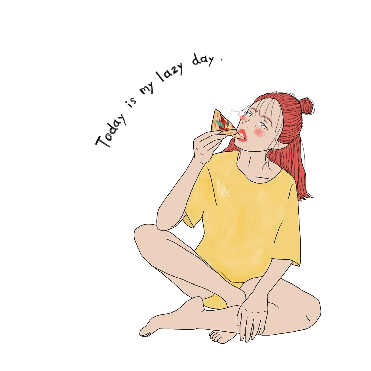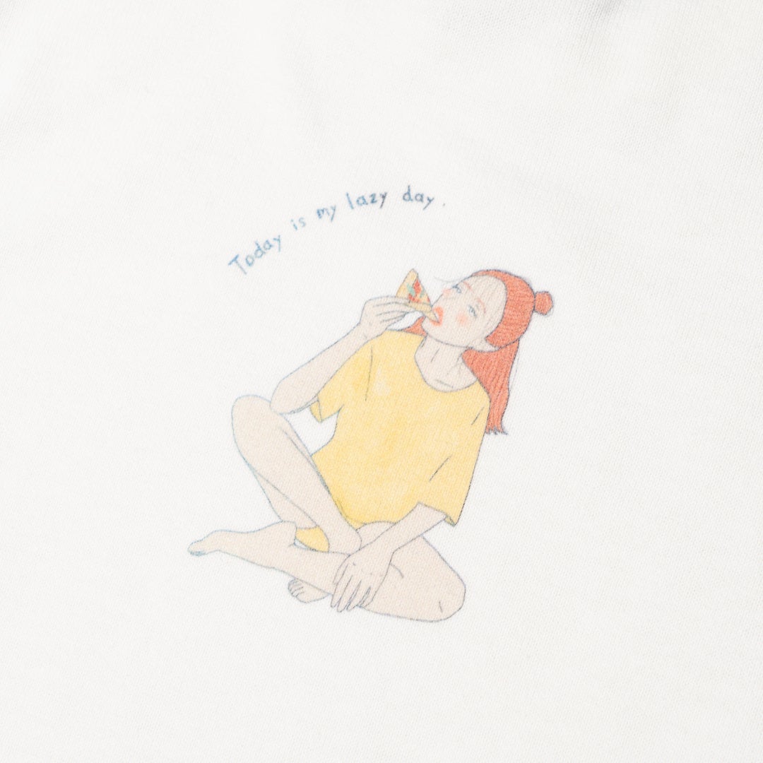 プリントしたグラフィックは、イラストレーターのサクマランが「自分らしく」をテーマにペンタブで描き下ろした3枚。自由気ままにピザをつまむ人、くつろぐ二人、新聞を頭にかぶって休む人など、遊び心のあるイラスト3種となっています。