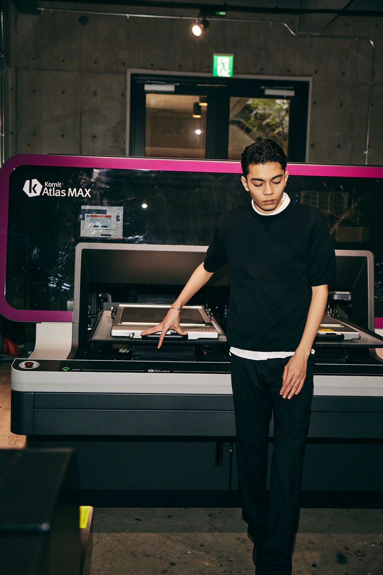 プラザクリエイトは、2022年よりアパレル事業に本格参入し、原宿・神宮前にアパレルファクトリー&カフェの「HATTO CREATIVE PLAZA」を展開してきました。イスラエル製の最先端衣類プリンター、Atlas MAX(アトラスマックス)を設置し、必要なときに必要な分だけ印刷する「オンデマンドプリント」で、無駄を出しにくいものづくりをしています。