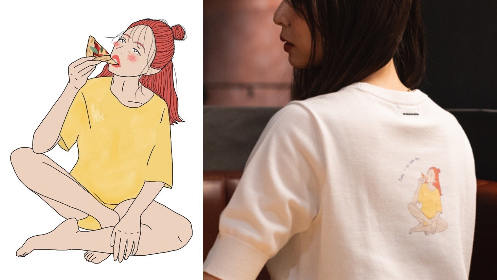 イラストレーターとして独立6年目を迎える今、初のアパレル商品を出せたことを嬉しく思います。私自身、過去に仕事をがんばりすぎて心身のバランスが危うくなった経験があり、イラストで人物を描く際には、どこかウェルビーイングを意識して描いてきました。無理なダイエットで絞った体や誰かの決めた美にとらわれるのではなく、自分らしくいてほしい。そんな願いを込めて、イラストの人物に命を吹き込んでいます。