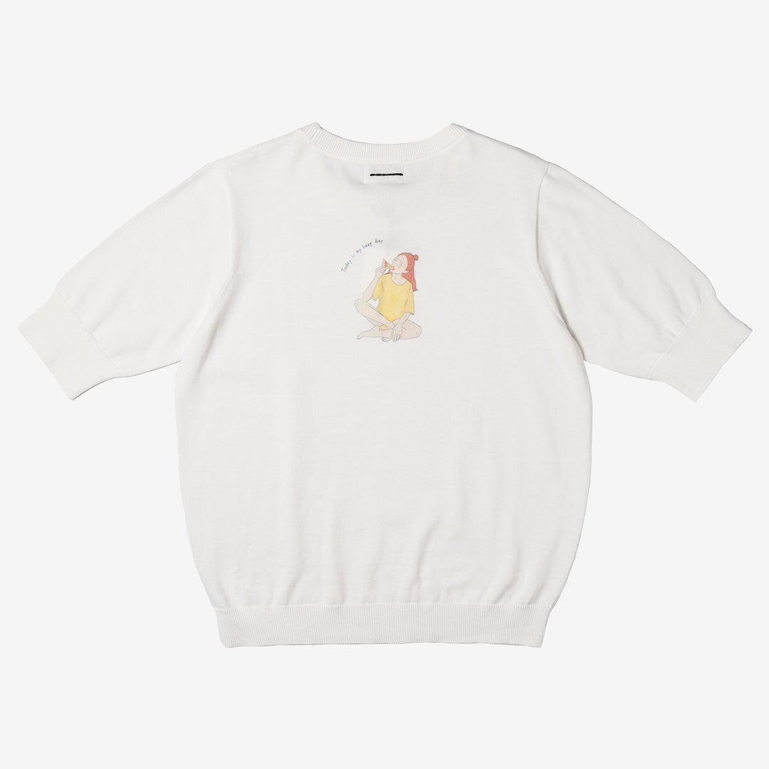 サクマランが描く柔らかなタッチのイラスト×ニットの包み込むような優しさが、着る人の気持ちを和ませ、リラックスさせてくれます。