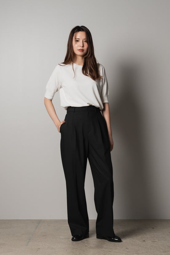 『ご自愛ニットTee』は、仕事やプライベートなど、毎日を忙しくがんばるあなたに寄り添うアイテムです。ホールガーメントという縫い目のない編み方をすることで、生地本来の伸縮性を活かし、着心地抜群。体にフィットする美しい3Dシルエットに仕上げました。また、従来のパーツを組み合わせて縫い付けるニットウェアではなく、1着丸ごと編む製法で、カットや縫い代を必要最小限に。人にも環境にとっても優しいニットです。