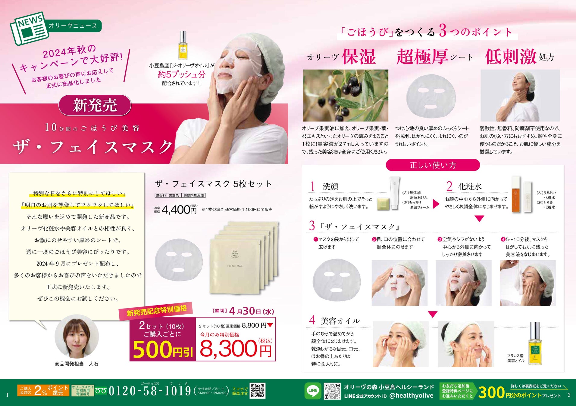 オリーブの恵みをたっぷり含んだ小豆島産美容オリーブオイル配合『ザ・フェイスマスク』新発売