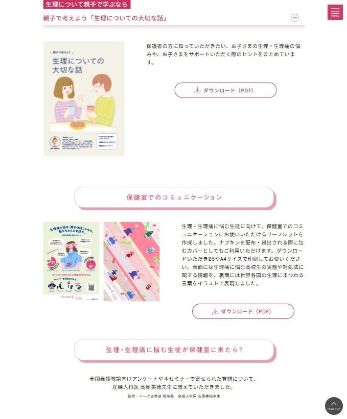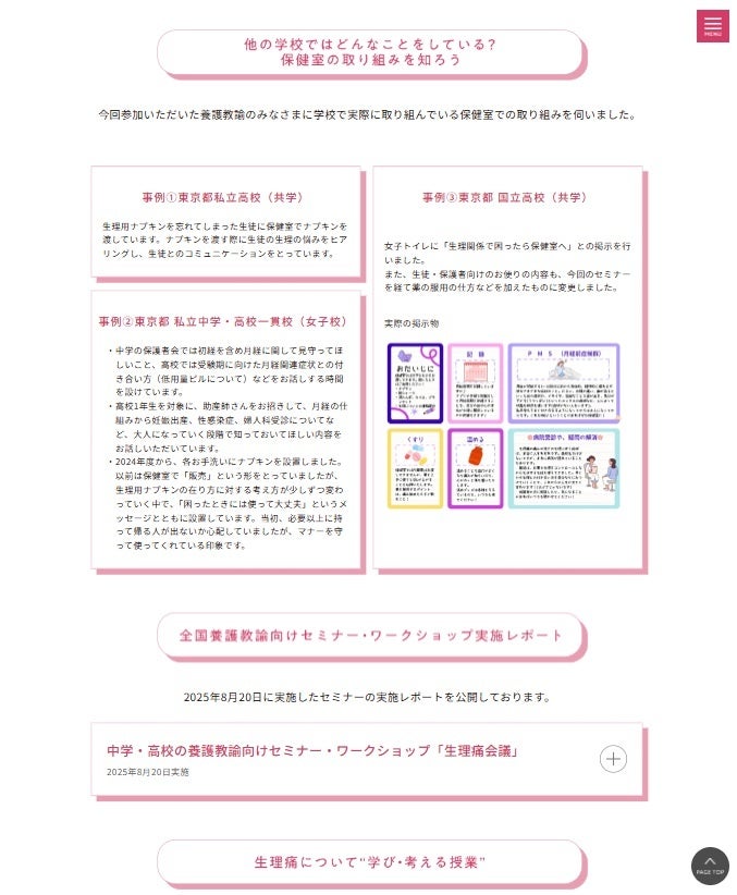 ●養護教諭の皆さんからの声をもとに、特設ページ「保健室と生理」を公開