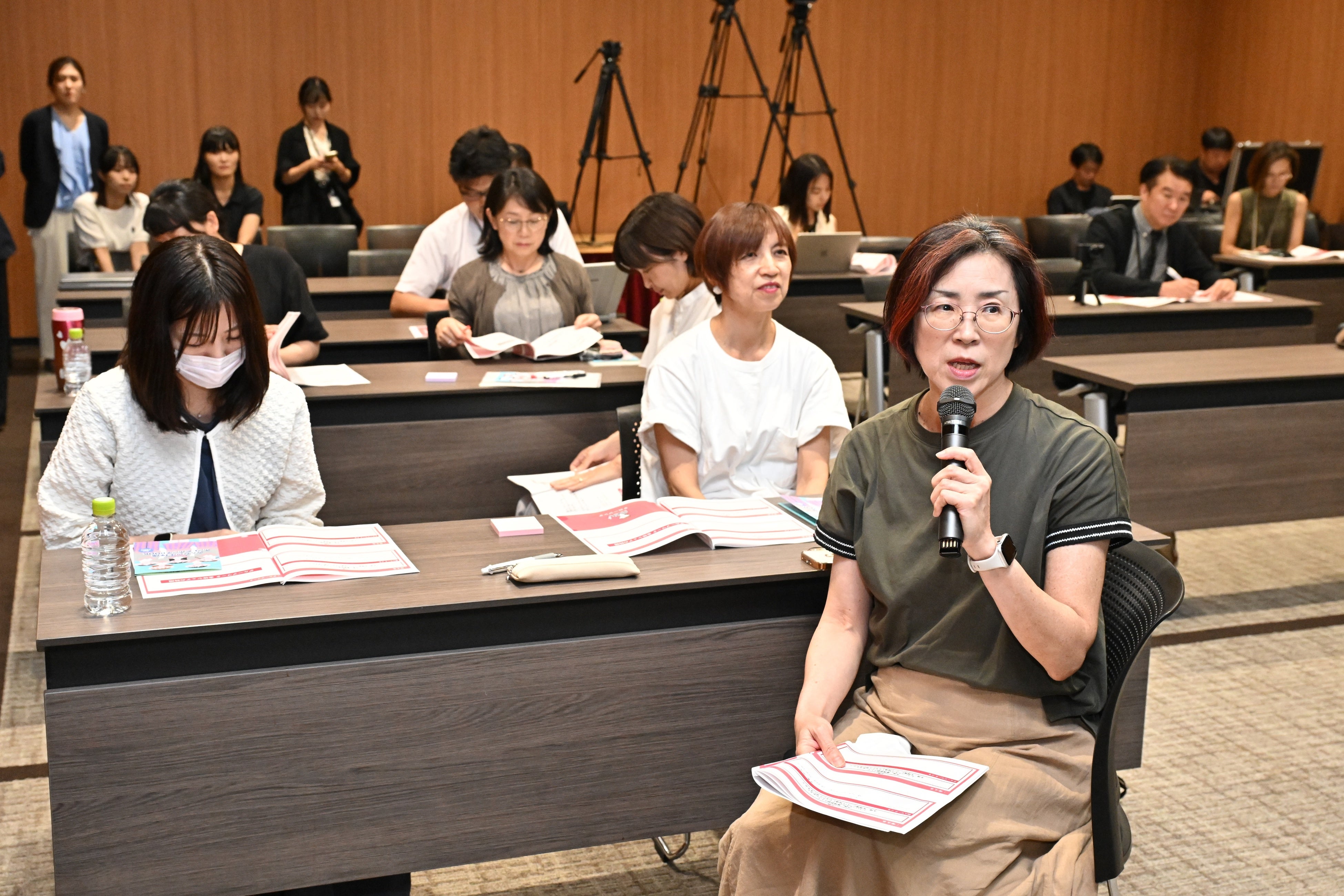 続いて行われたワークショップでは、「今後、養護教諭としてどういった情報があると生理・生理痛について指導しやすいか」をテーマに、グループに分かれてディスカッションを行いました。「生徒へナプキンを渡す際に薬の飲み方を伝えるカードを添える」との意見や「毎月継続的に情報発信できる仕組みが必要」など具体的な提案が寄せられました。さらに「指導時に活用できる生理・生理痛に関する情報がまとまったツールが欲しい」といった意見も挙がり、活発な意見交換の場となりました。高尾先生からは「生徒は未成年であり、保護者の理解を得られないケースもあるため、養護教諭が一方的に勧められない難しさがあります。先生や保護者など周囲の大人たちのサポートが、生徒の未来に大きな影響を与えるので、ぜひ次の世代を育てていってほしい」とのメッセージとともに生徒が安心して相談できる環境づくりの大切さを伝えました。参加者からは、「医学的な内容を生徒にも伝えやすい言葉で言ってもらったのが活用しやすくてよかった」「保健室を頻繁に訪れる生徒が保健室を信頼してくれているということを初めて知った」といった声や、「毎年この時期(夏休み期間)に実施してほしい」「生徒への対応だけでなく、教職員に向けた研修のモデル案などがあるとありがたい」といった声が寄せられ、生理・生理痛に悩む生徒や保護者、他の教員との向き合い方について、改めて考える機会となった様子でした。