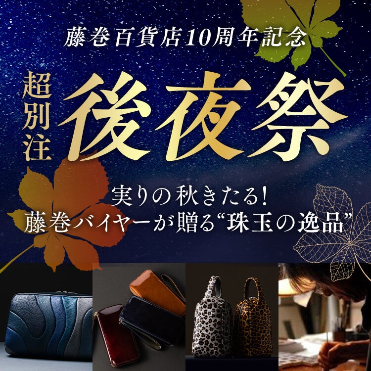 「日本」をテーマにした逸品のみを取り扱うセレクトショップ「藤巻百貨店」(https://fujimaki-select.com)では、創業10周年を記念し、2022年9月16日(金)~25日(日)までの10日間、「秋の<超別注>後夜祭」を開催いたします。期間中は毎日特別な新商品が登場。オンラインショップでの販売のほか、一部アイテムは藤巻百貨店 銀座店でも展示・販売予定です。