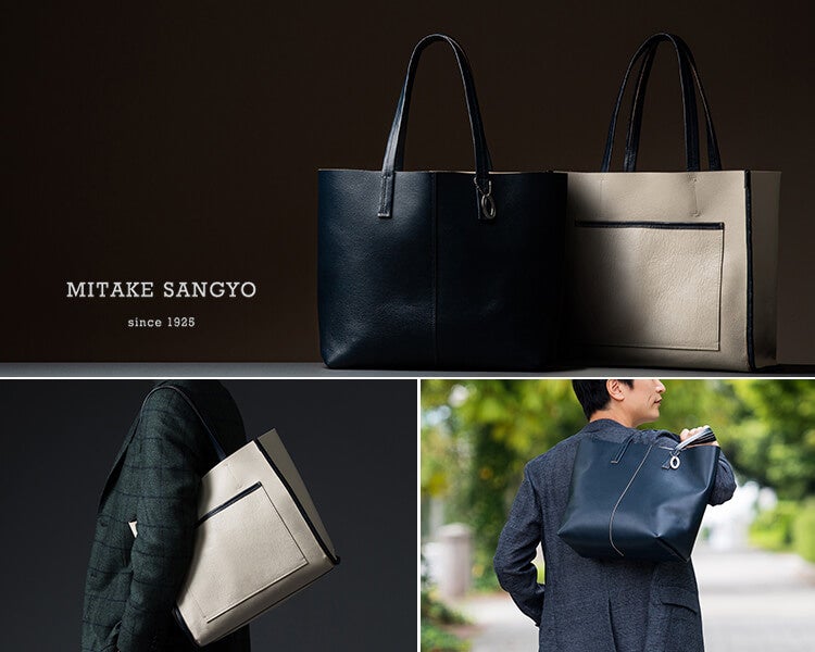 表裏を返すことで、ひらり表情を変えるダブルフェイス。驚きと使い勝手を両立!技あり軽量フルレザートート