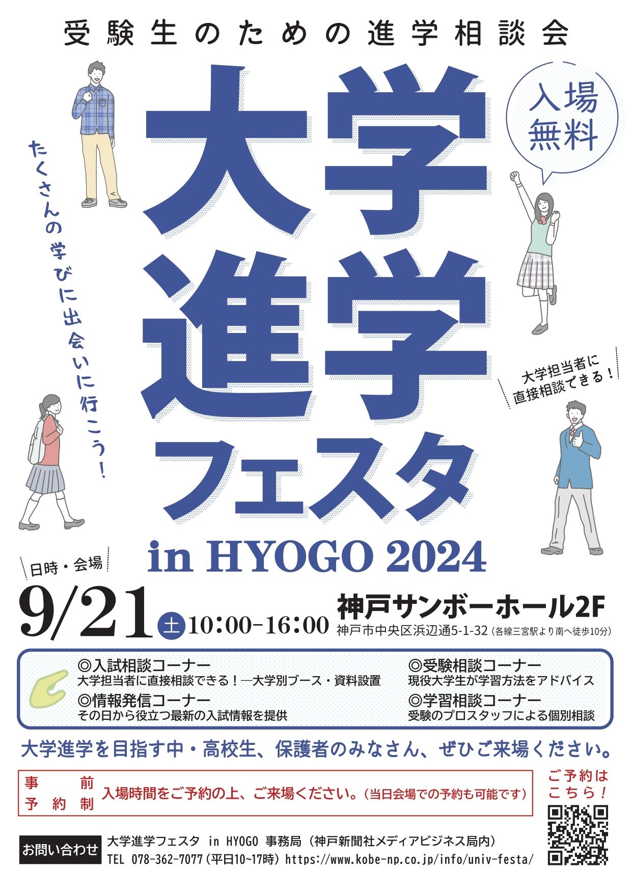 「大学進学フェスタ in HYOGO 2024」9月21日、神戸サンボ―ホールで開催!