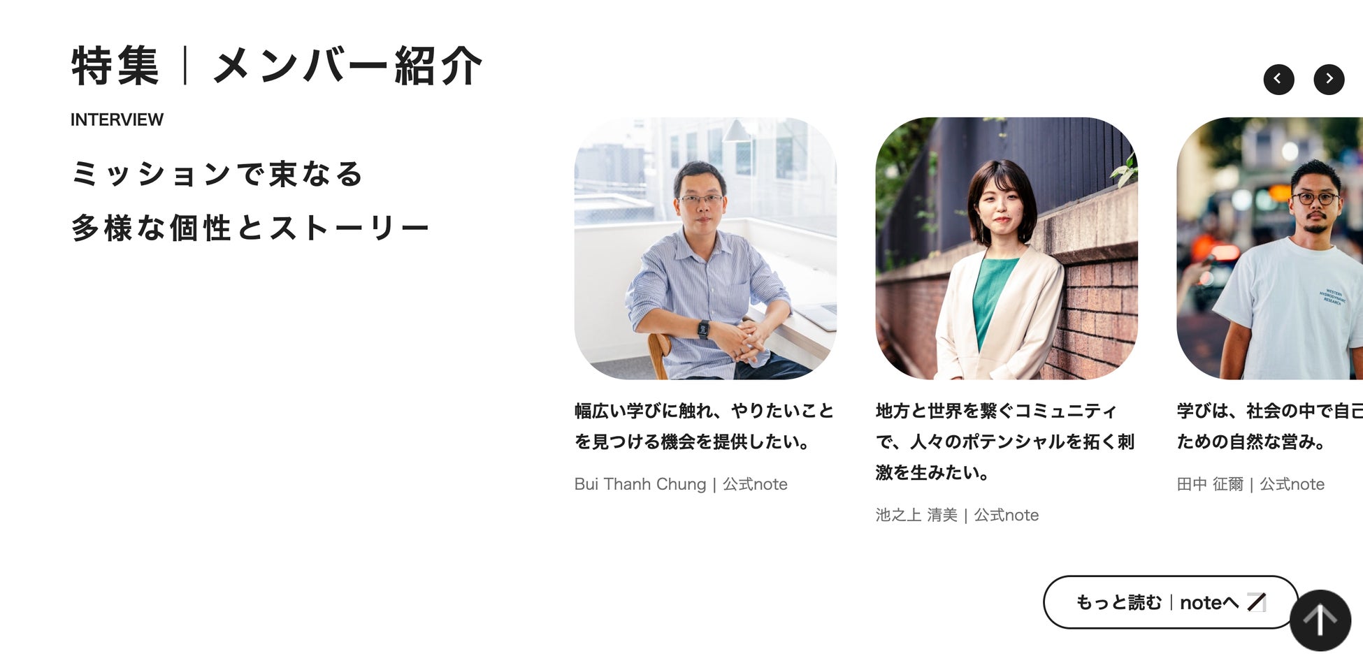 また、コーポレートサイトでは、社会の難問に挑み続けるメンバーの一人ひとりの「意志」を写真で表現しています。多様で個性的なメンバーを束ねるのは、スクーのミッションとビジョンです。