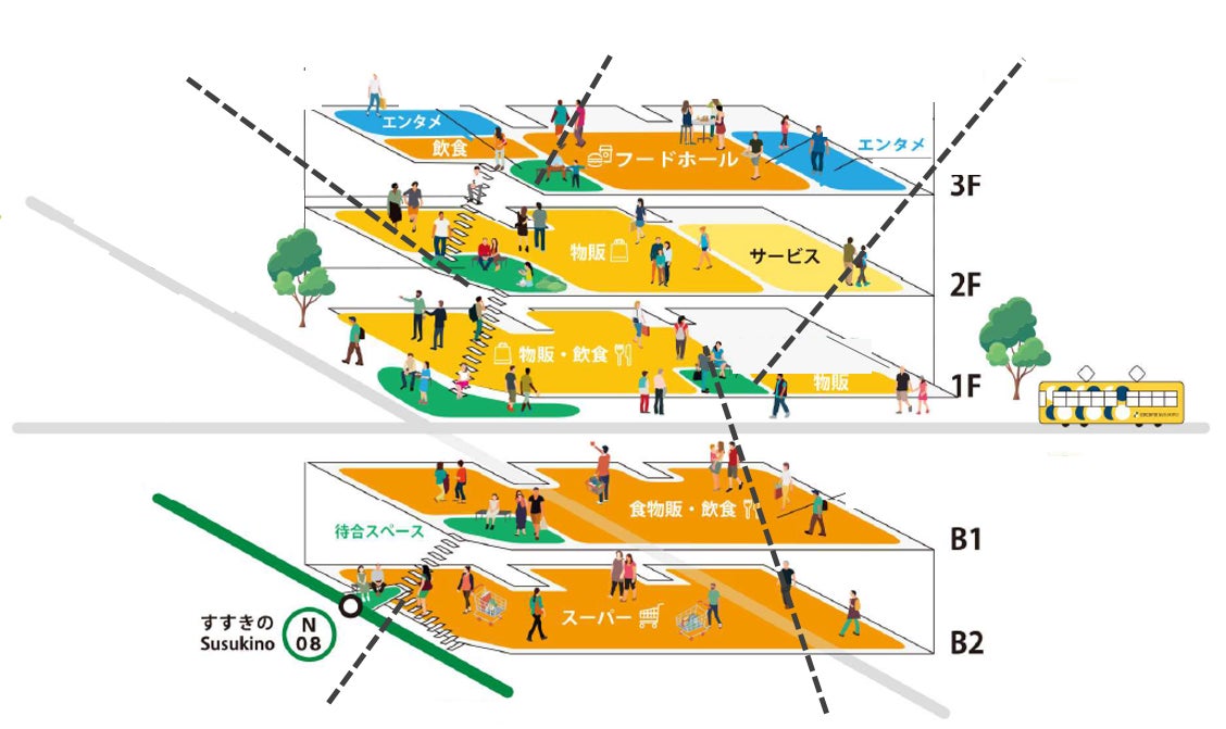 商業施設初出店14店舗、北海道初出店15店舗、札幌市内初出店2店舗、新業態22店舗、ラフィラからの再出店7店舗、と見どころ満載な全85店舗(全店舗開業時)が出店します。地元の方も観光の方も、何度も遊びに訪れたくなる施設をめざします。
