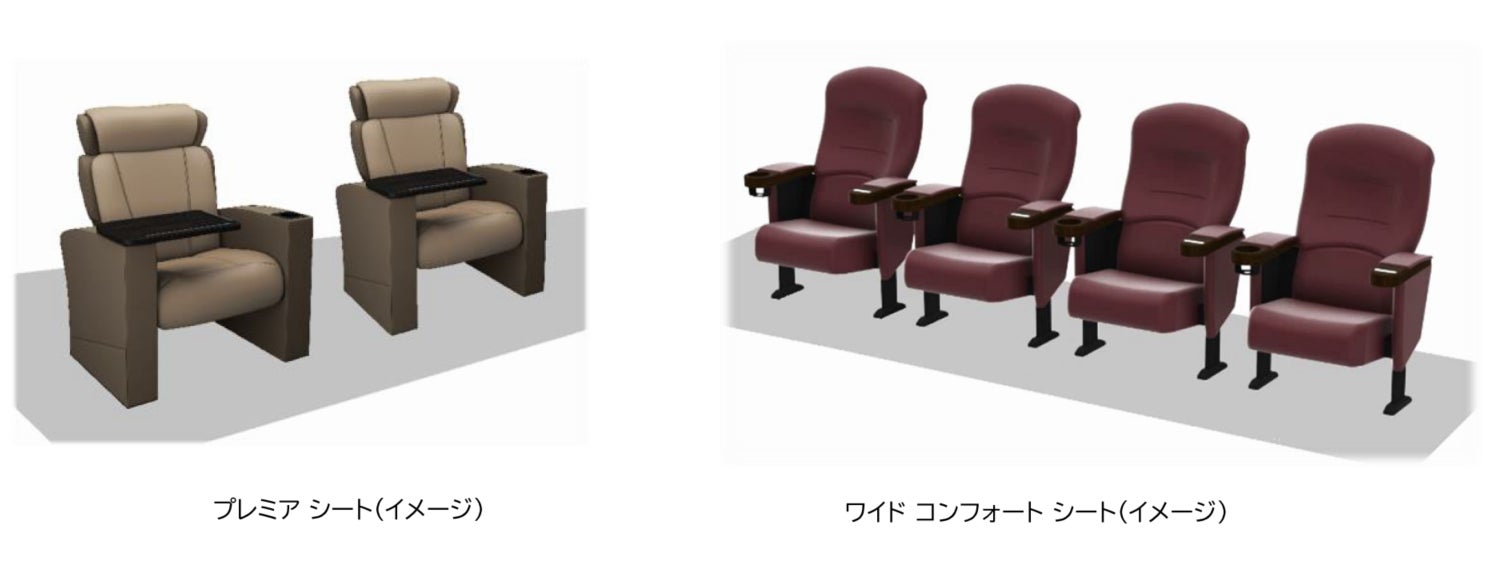 また、複数シアターには“プレミア シート”と“ワイド コンフォート シート”の2種のラグジュアリーな特別席を設置します。ストレスなく座れる高品質なシートを採用し、一人当たりのスペースが広く確保された特別席は、隣席のことを気にすることなく映像コンテンツへの没入感をより高めることを約束します。