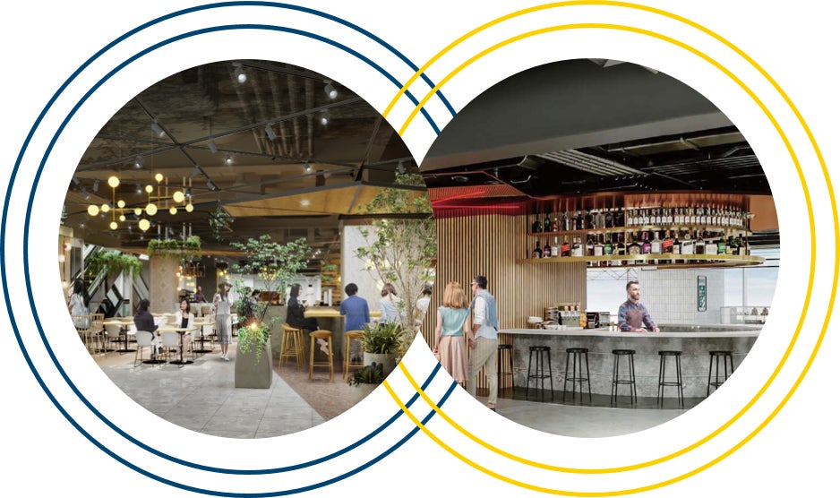 3階には屋内広場「COCONO SQUARE」を設けています。日常的に憩いの場として利用いただけるだけでなく、様々なイベントの開催など、エンターテイメントシーンの提供も予定しています。