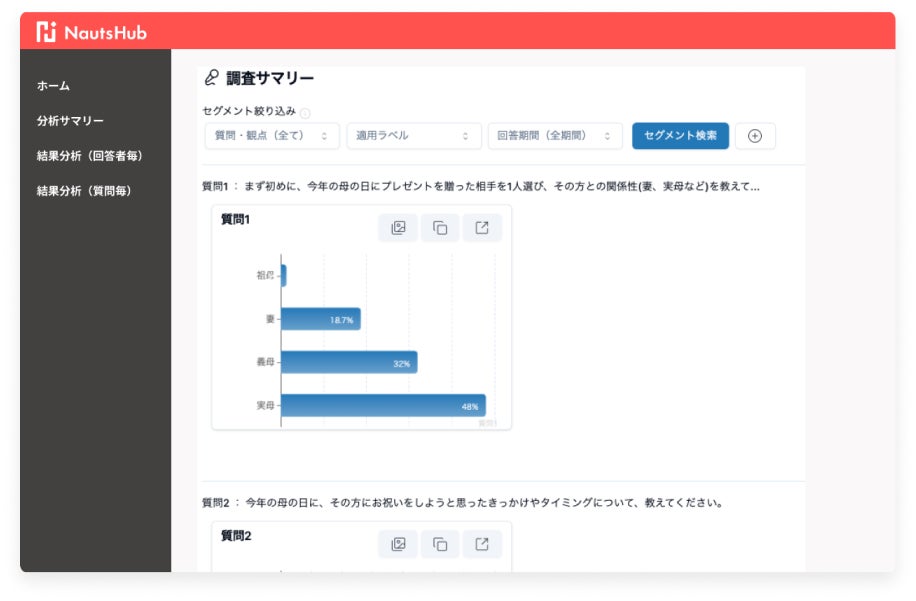 「NautsHub」は、生活者の声を効率的に集め、企画案に変換するためのリサーチプラットフォームです。