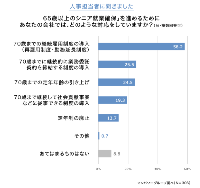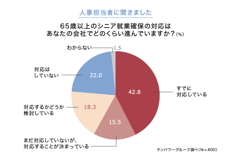 マンパワーグループ調査、「65歳以上の就業」対応企業は約4割