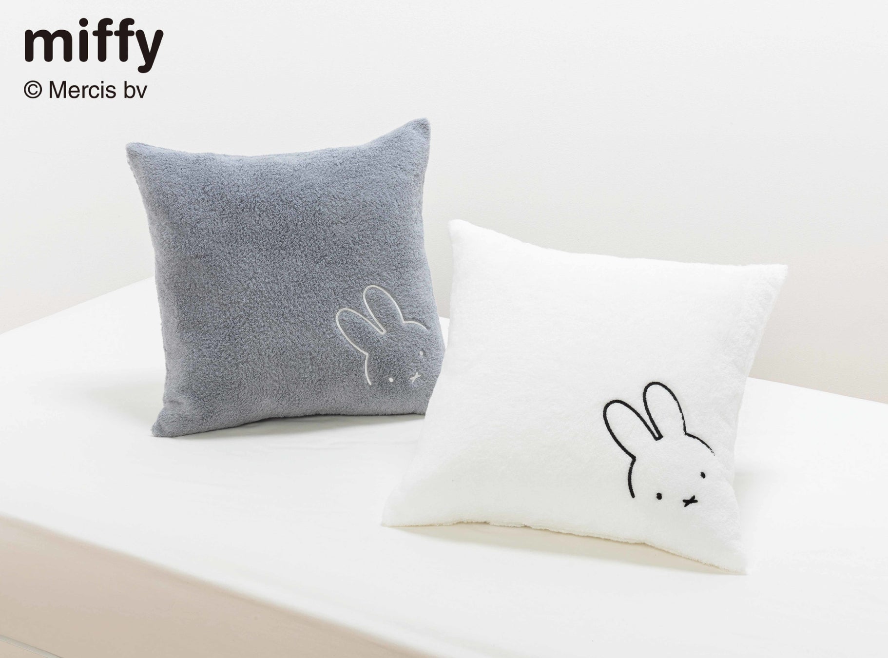 ラボレーションアイテムは、バスタオルからミニタオルまで全4サイズのタオル、着るバスタオル、ヘアバンド、アイマスク、クッションカバーです。グレーとホワイトのシックなカラーに、ミッフィーのシンプルな刺繍や、チラッと顔を覗かせるかわいいタグをあしらい、大人っぽいデザインに仕上げました。デザインだけでなく、肌触りや品質にこだわる大人女性におすすめなタオルグッズです。