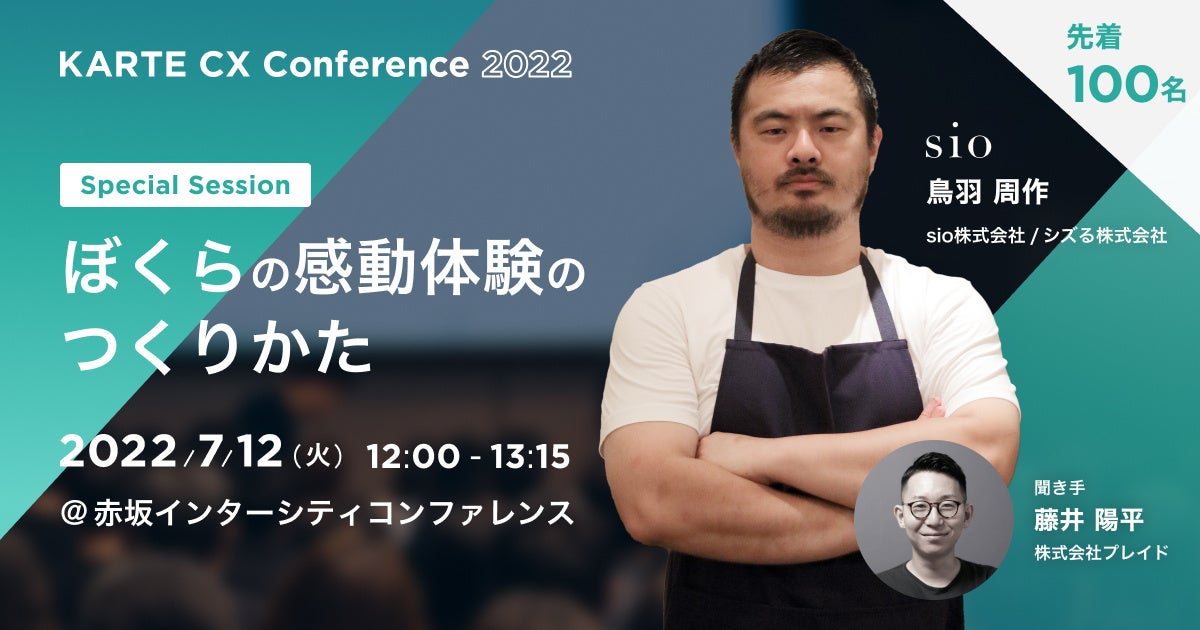 KARTE CX Conference 2022で、「sio」オーナーシェフ鳥羽周作さん登壇のスペシャルセッション開催決定 #KARTE_CXC
