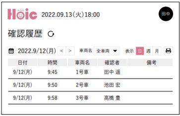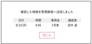 QRコードを読み込み、園児さんが全員降車したことを送信すると園内パソコンの管理画面に該当バスの降車確認が通知され、確認履歴としてリアルタイムに反映されます。