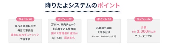 【“降りたよ”システム(園バス降車安全確認システム)のポイント】