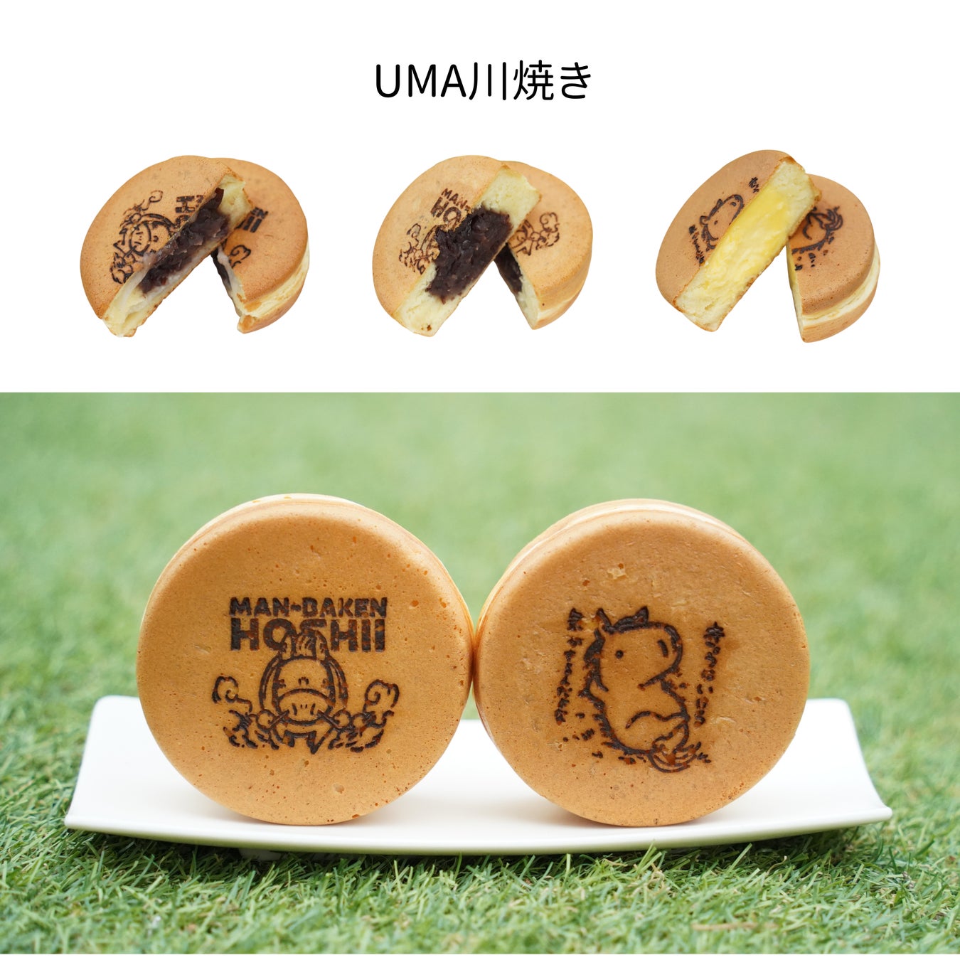 今回のイベントでは、約5年にわたる改修工事を終えた船橋競馬場のリニューアルオープンにあわせ、UMAbredの世界観を存分に楽しめる「UMA(ウーマ)川焼き」が初登場するほか、原作者 鷹月ナト先生描きおろしイラストを使用したグッズも販売いたします。
