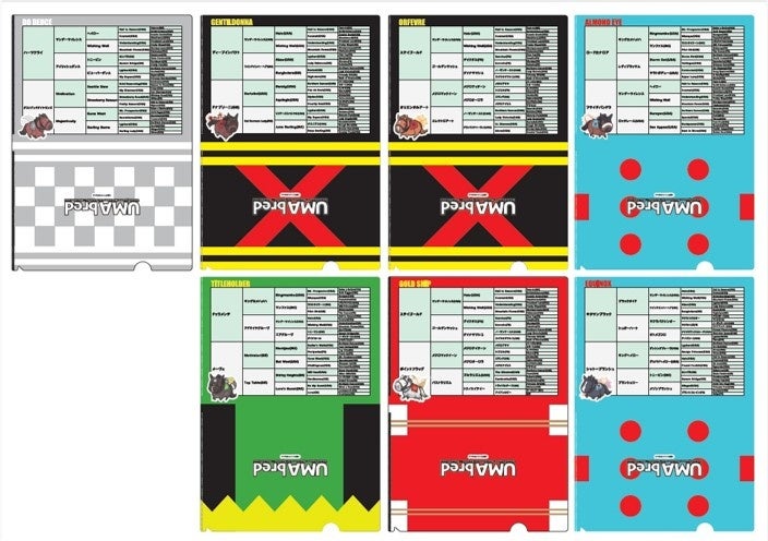 競馬は血統のスポーツ。各馬もとい各UMAを彩るサイアーラインを1枚のクリアファイルに詰め込みました。