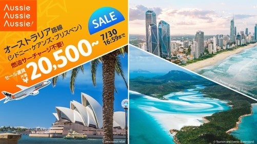 本キャンペーンでは、オーストラリア路線セールを7月17日(水)12時から開始します。また就航地であるシドニー、ケアンズ、ブリスベンを現地インフルエンサーが紹介する動画もHPで公開します。さらに、地方局でのTVCMをはじめ、webや屋外メディア等での広告を7月19日(金)より順次展開していきます。