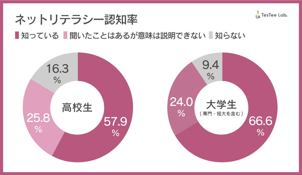 メディア事業・リサーチ事業・プロモーション事業・広告代理事業を展開する株式会社テスティー(本社:東京都渋谷区、代表取締役:横江優希)は、若年層リサーチ結果を発信する「TesTee Lab」にて、高校生・大学生(専門・短大含む)の男女1,974名(高校生男性317名、高校生女性446名、大学生男性429名、大学生女性782名)を対象に「パソコン・ネットリテラシー」に関する調査を実施しました。