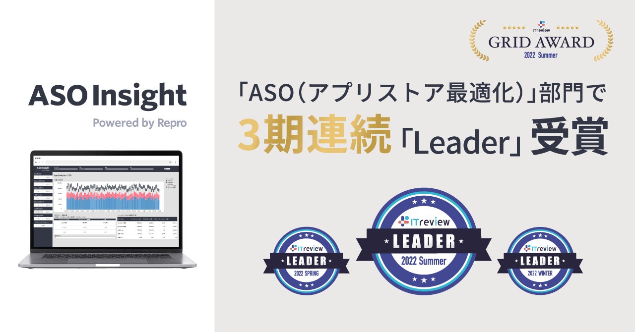 【3期連続受賞】Reproの「ASO Insight」が「ASO(アプリストア最適化)」部門で最高位「Leader」を受賞