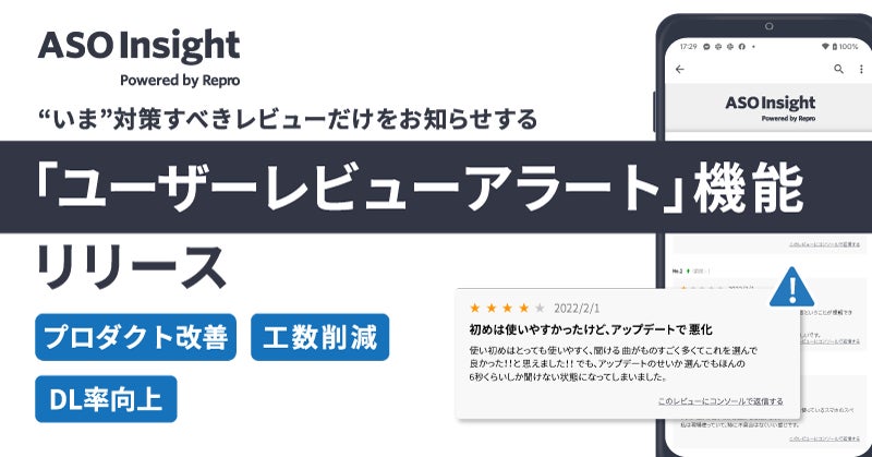■ ユーザーレビューアラート機能、ASOスコア機能について